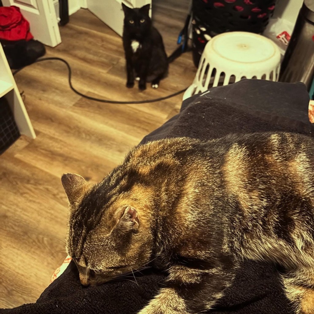 Cash and Otis’ humans tied the knot a couple of months ago. I always joked that they should be ring bearers. They always wear now ties on their collars. Otis’s fur pattern is close enough to be a tuxedo. But no. They are typical cats; they do as they please and do not follow directions.